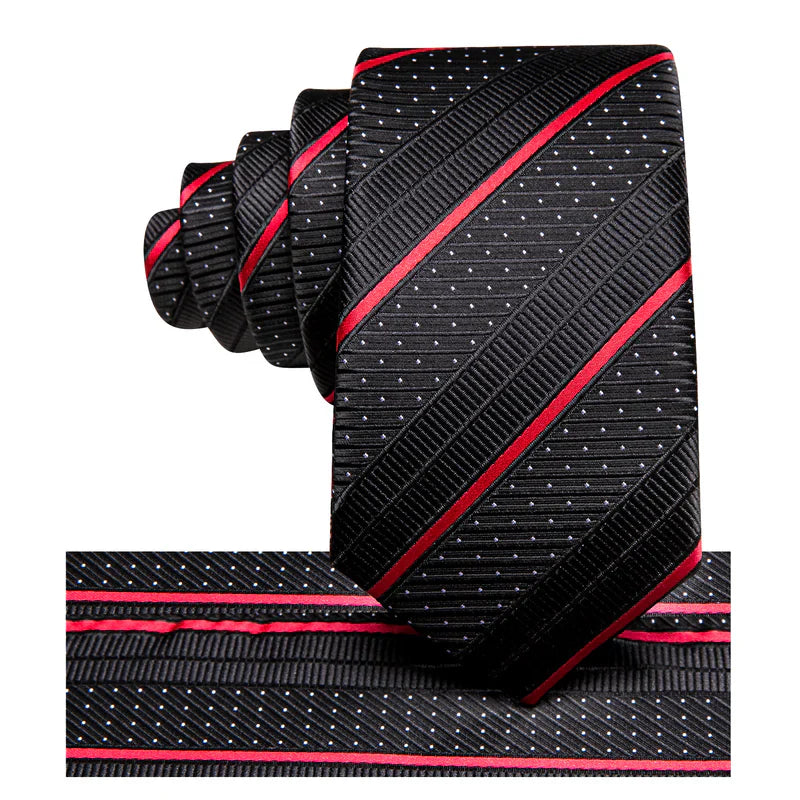Boys black and red striped tie made from jacquard woven silk. Our striped design ties are perfect for special occasions... Read more