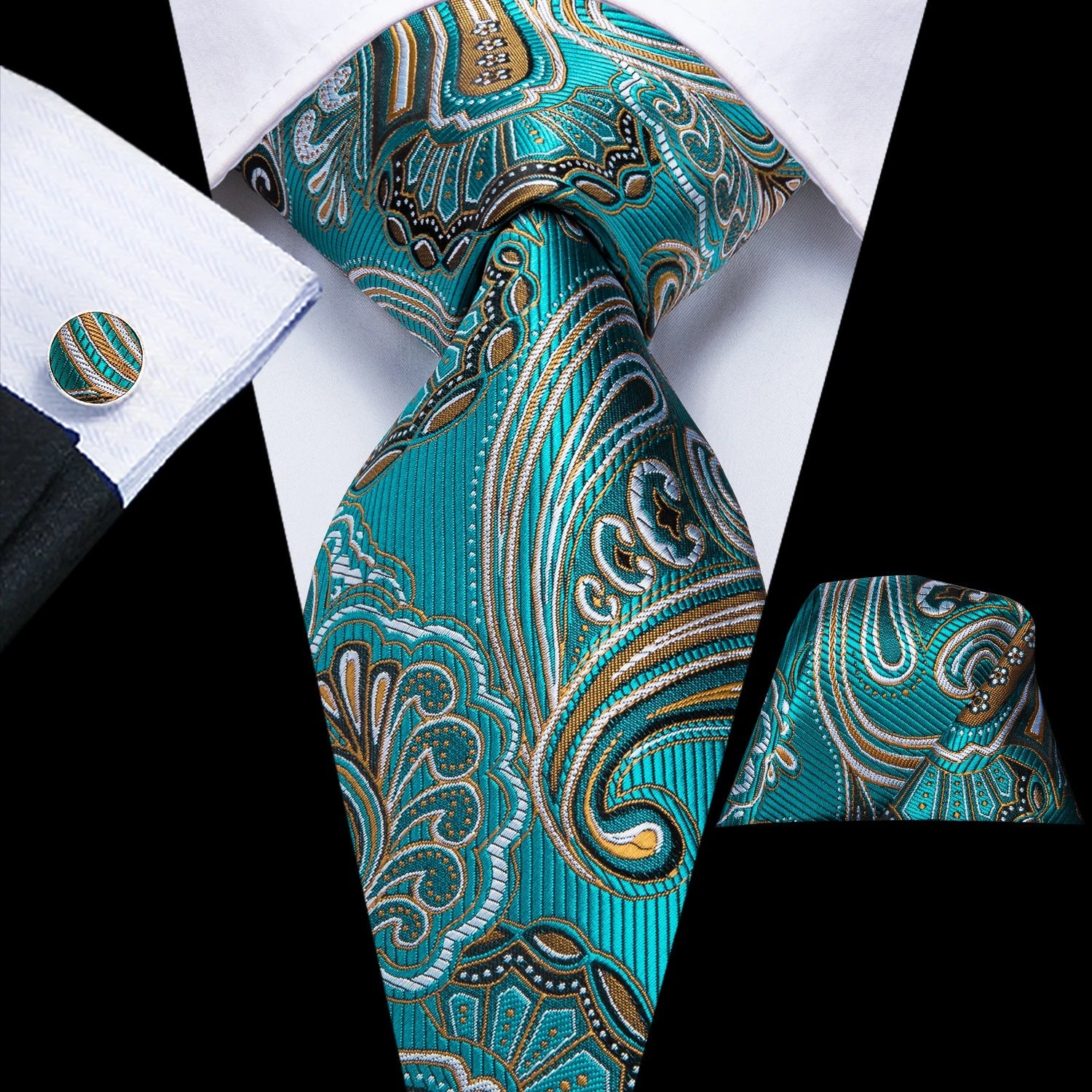 Turquoise Paisley Silk Tie - With Matching Cufflinks & Pocket Square